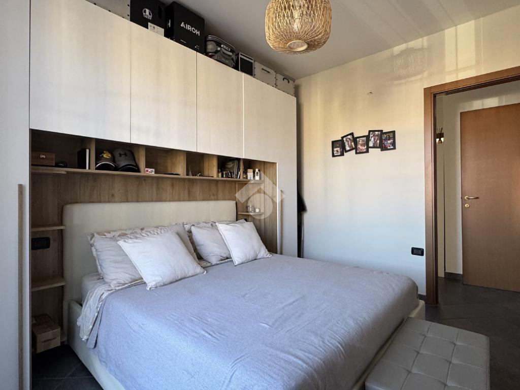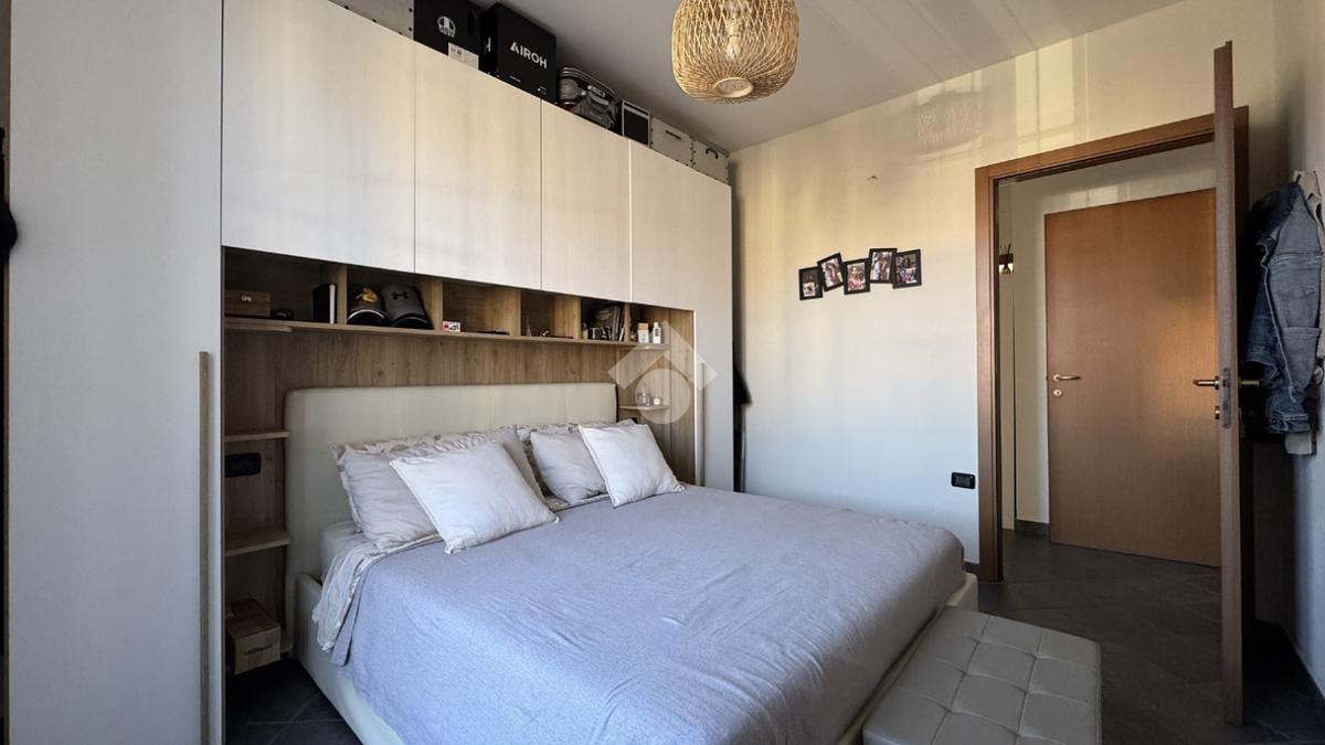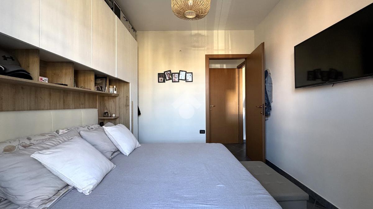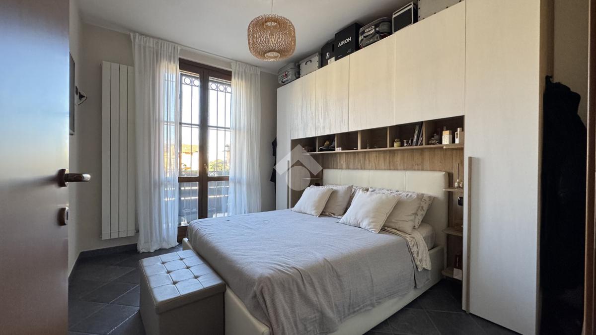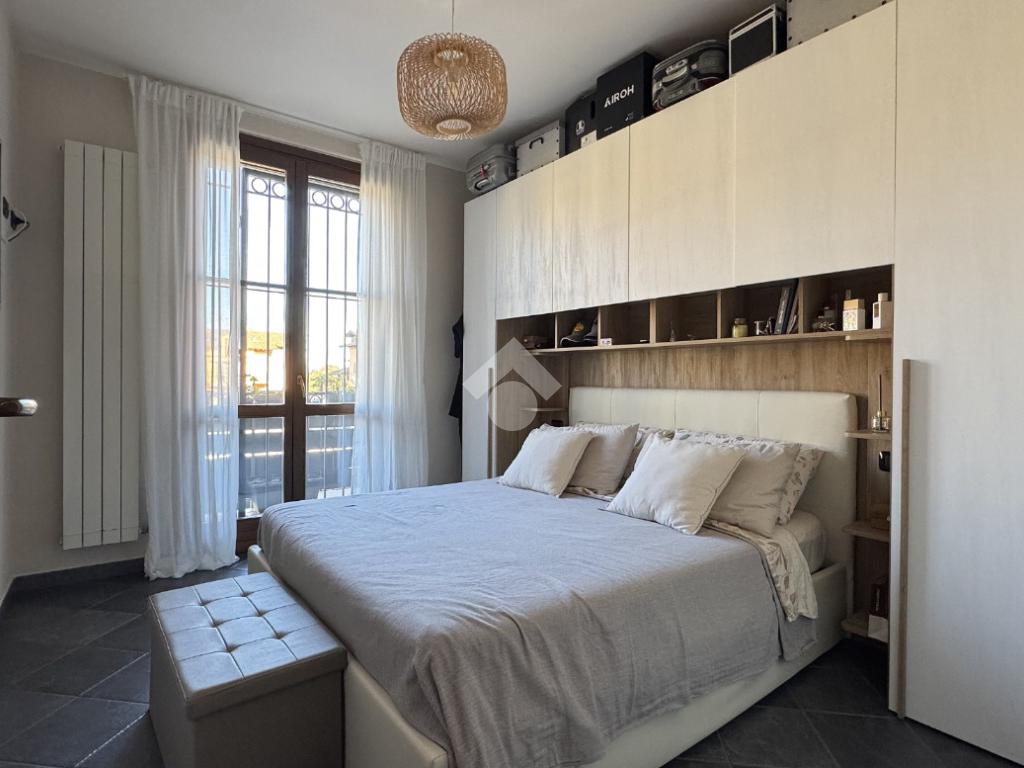 Un ampio disimpegno separa la zona giorno dalla zona notte, dove troviamo la camera matrimoniale, anch'essa dotata di accesso al balcone, tramite una comoda porta finestra.
