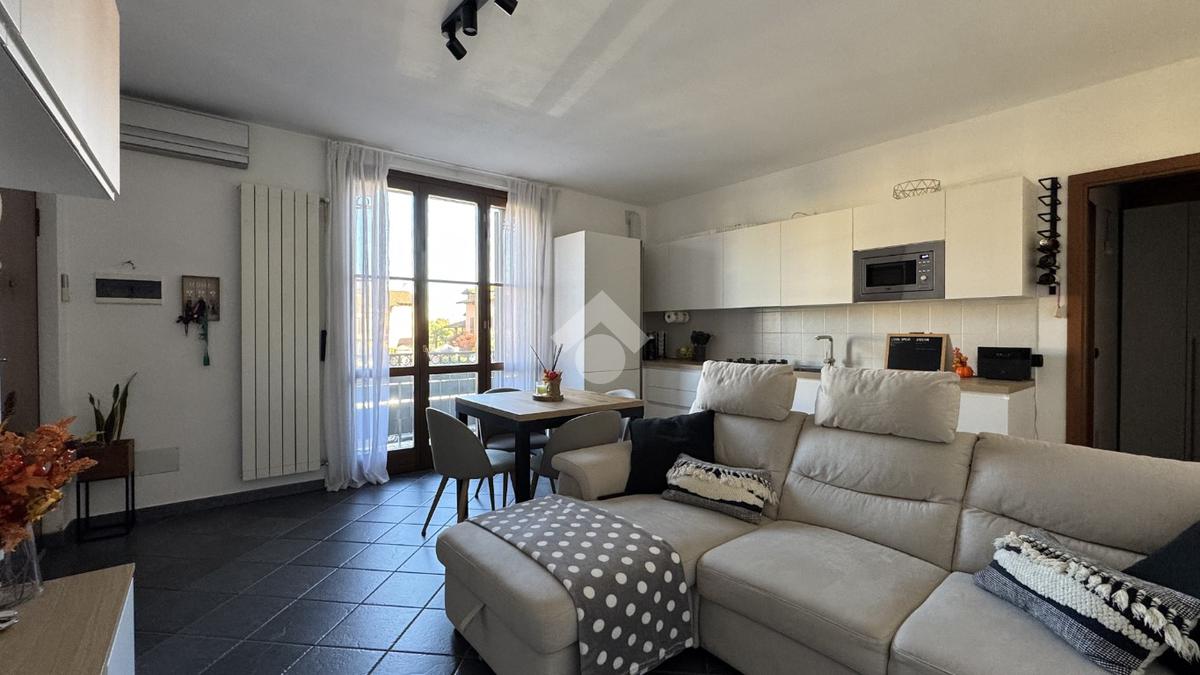 L'immobile è composto da un luminoso soggiorno con cucina a vista, creando un ambiente luminoso e accogliente. Grazie alla porta finestra, si accede al balcone privato.