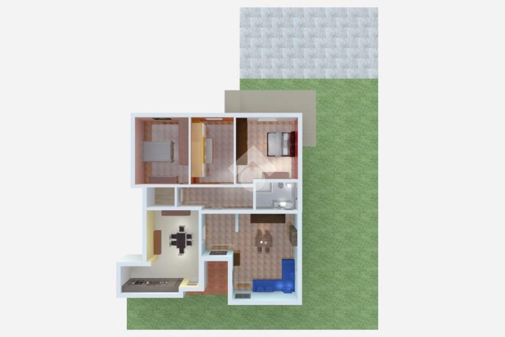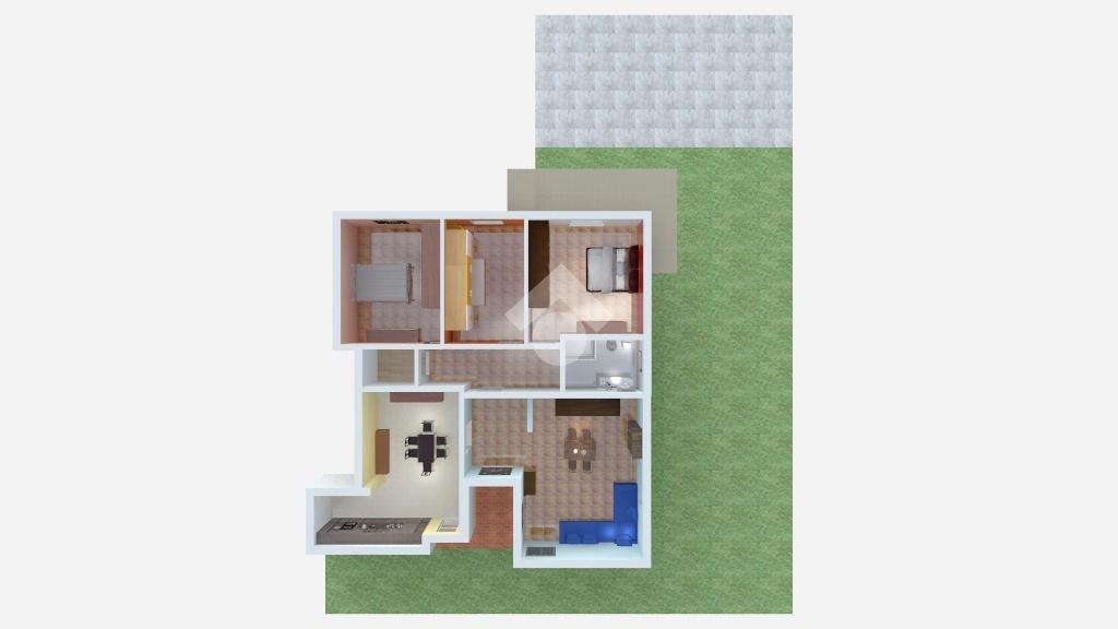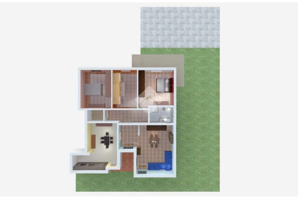Un comodo corridoio separa la zona giorno dalla zona notte, dove troviamo le due camere matrimoniali, la cameretta e il bagno finestrato dotato di box doccia.