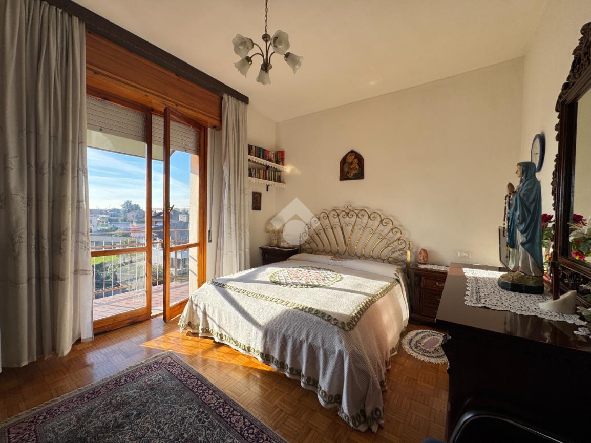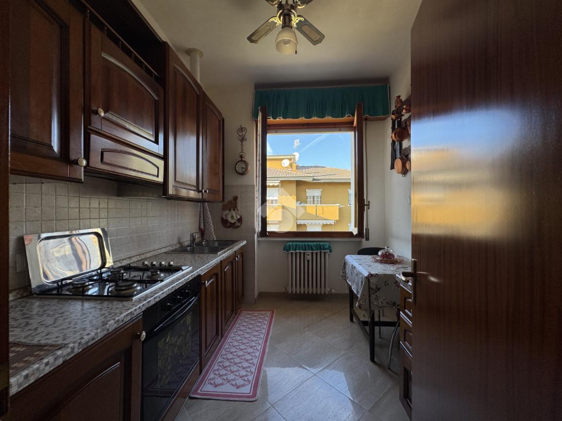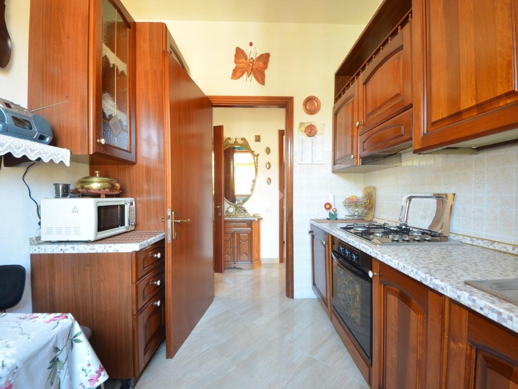 Un comodo disimpegno conduce alla cucina abitabile separata, al bagno finestrato dotato di box doccia e dalla spaziosa camera matrimoniale, con accesso diretto al terrazzo privato.