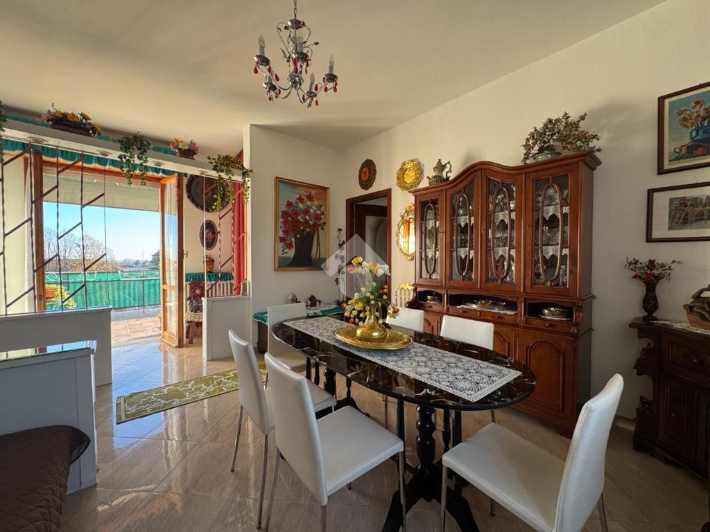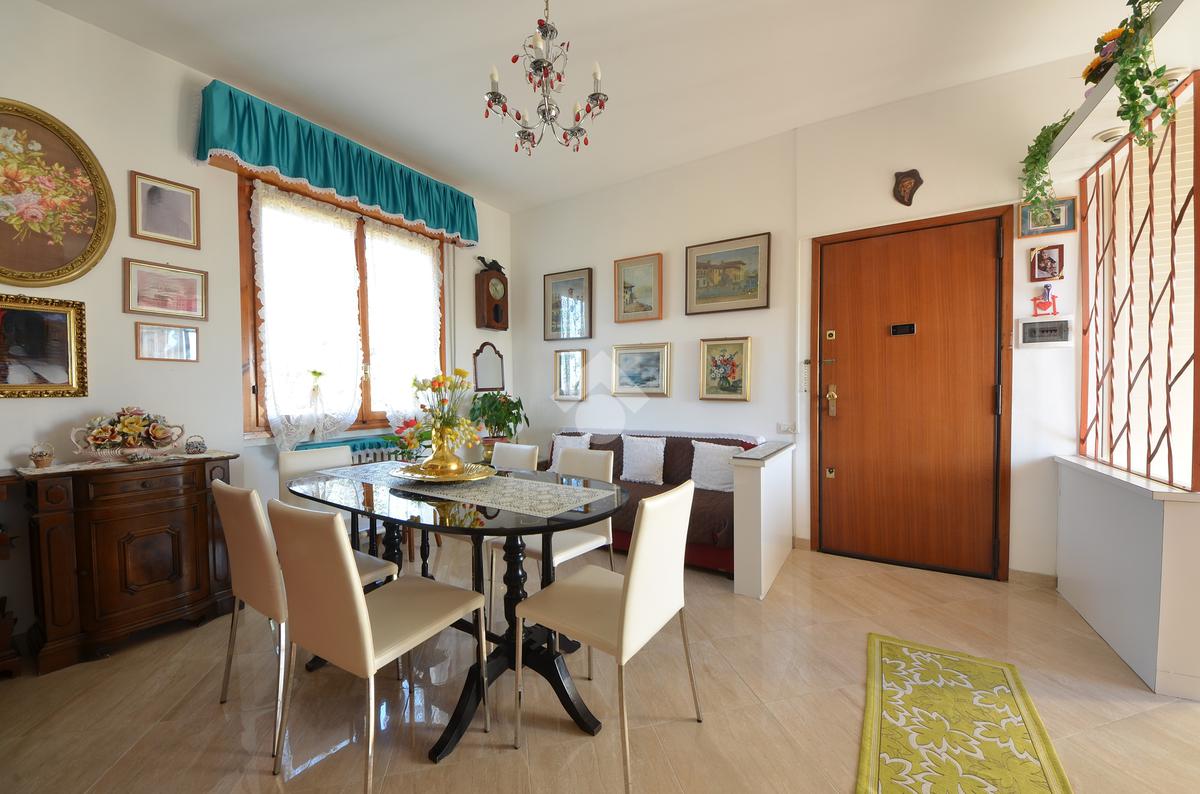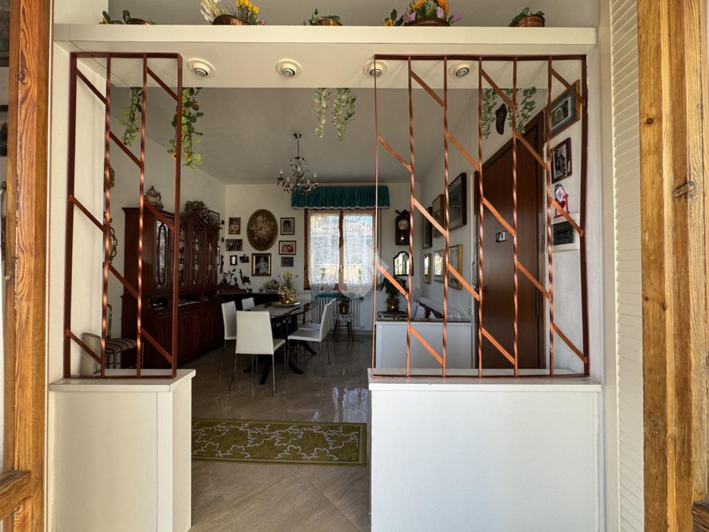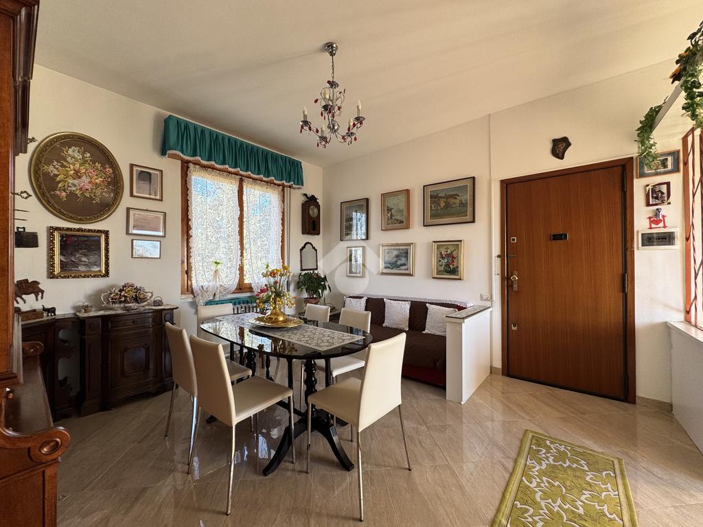 L' ingresso si apre direttamente al luminoso soggiorno, dotato di una porta finestra che conduce al terrazzo privato.