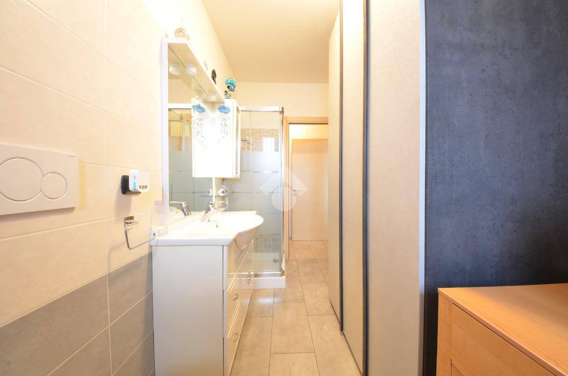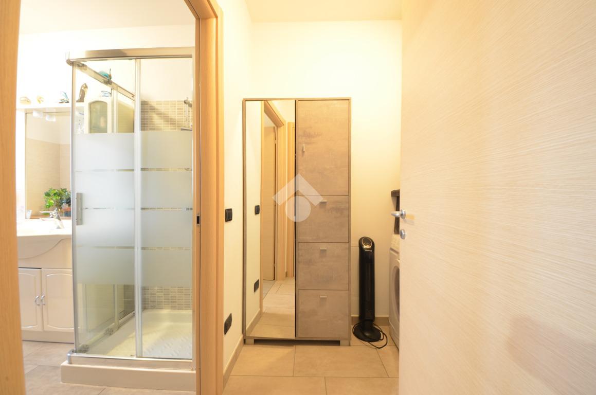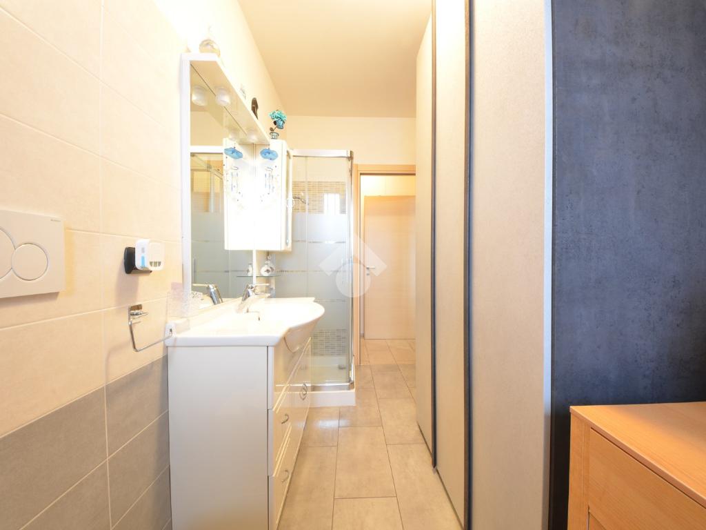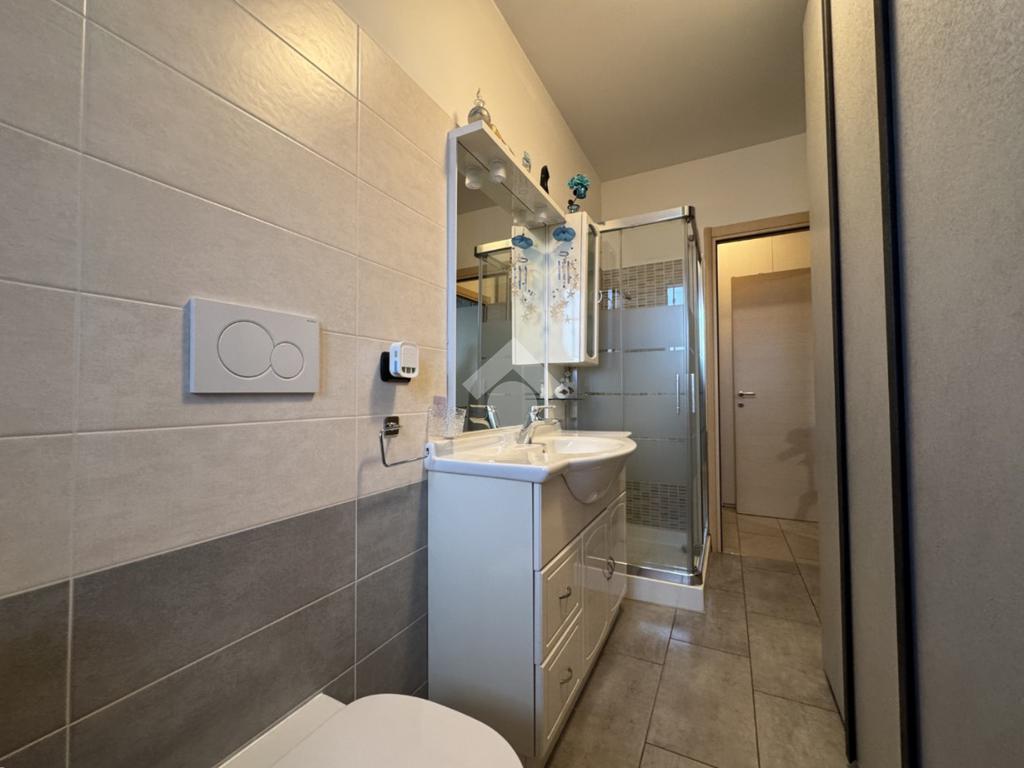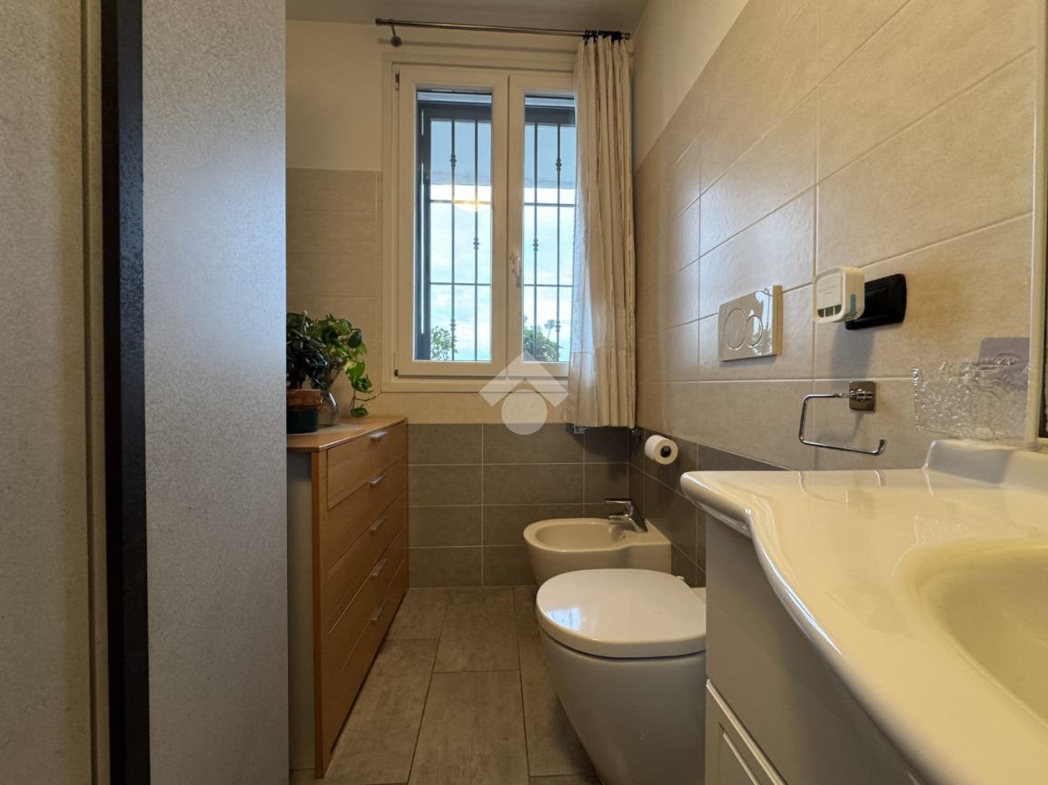 Un ampio disimpegno, adibito a lavanderia, separa l'ambiente open space dal bagno finestrato dotato di box doccia.