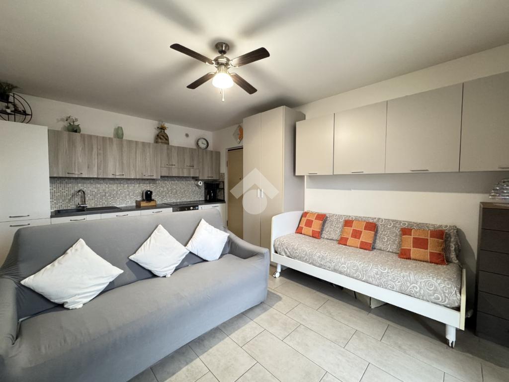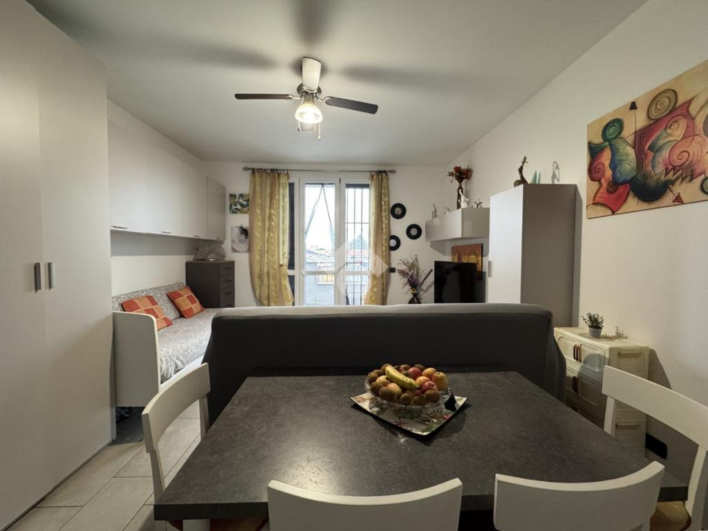 L' appartamento si compone di un unico ambiente open-space, dove troviamo il soggiorno/camera con cucina a vista. Dalla porta finestra si accede direttamente al terrazzo, perfetto per momenti di relax all'aria aperta.