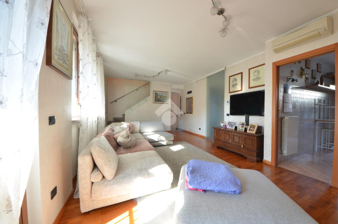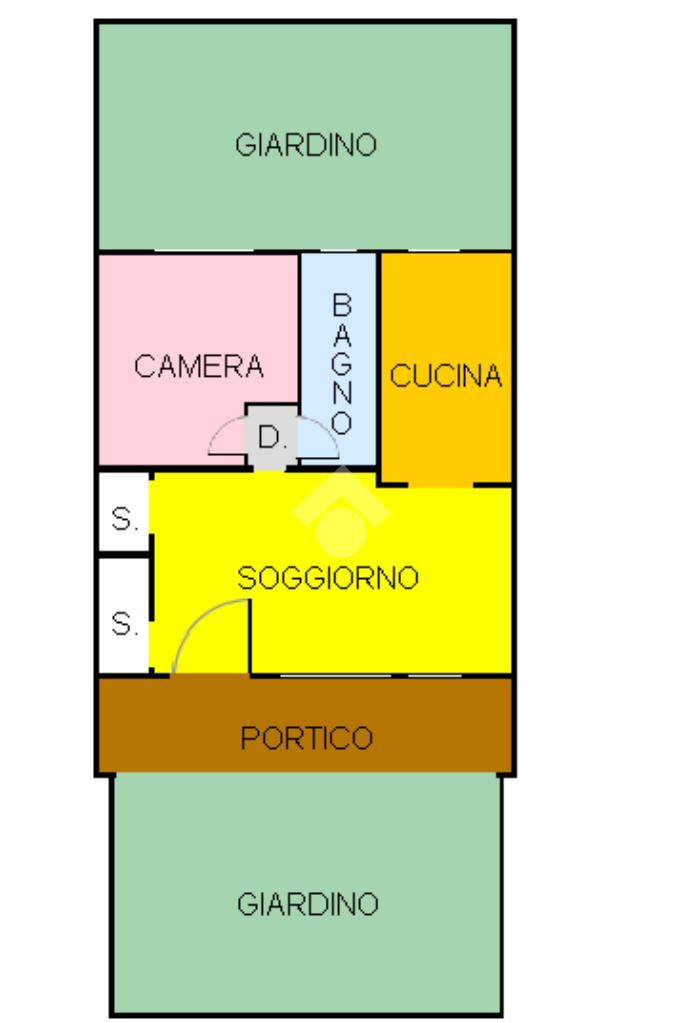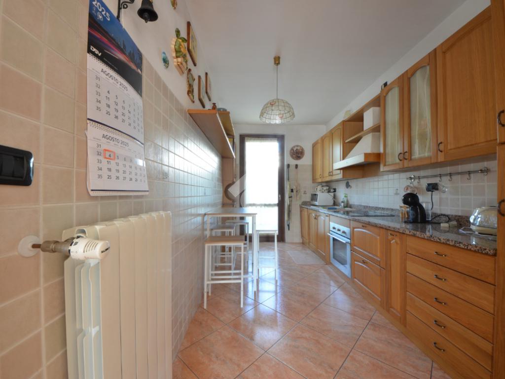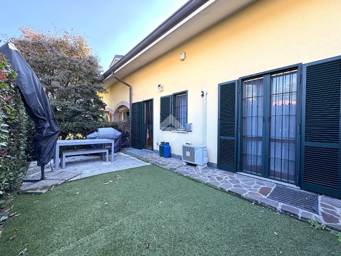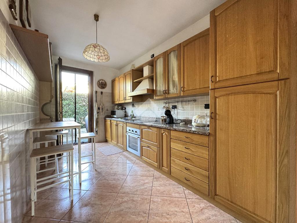 L'immobile si presenta con il soggiorno, spazioso e luminoso, grazie alle numerose finestre. Il soggiorno conduce direttamente alla cucina abitabile, dotata di porta finestra, dalla quale si accede al giardino privato.