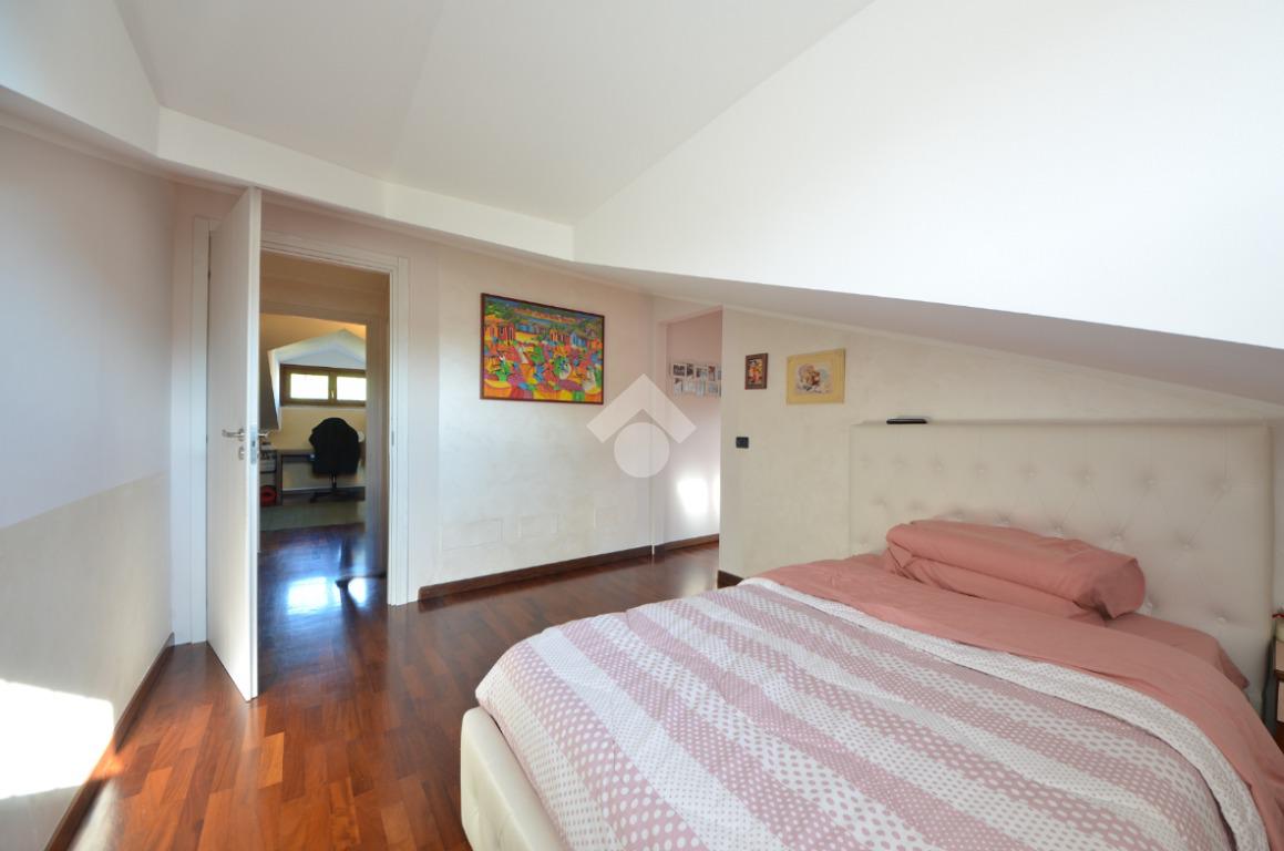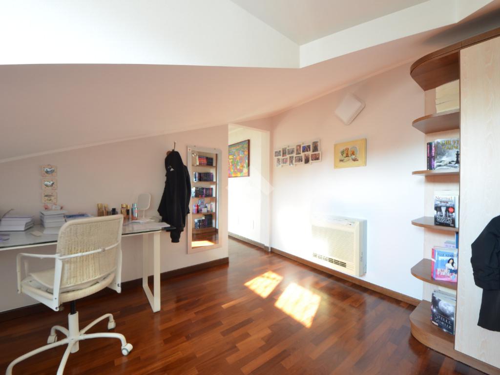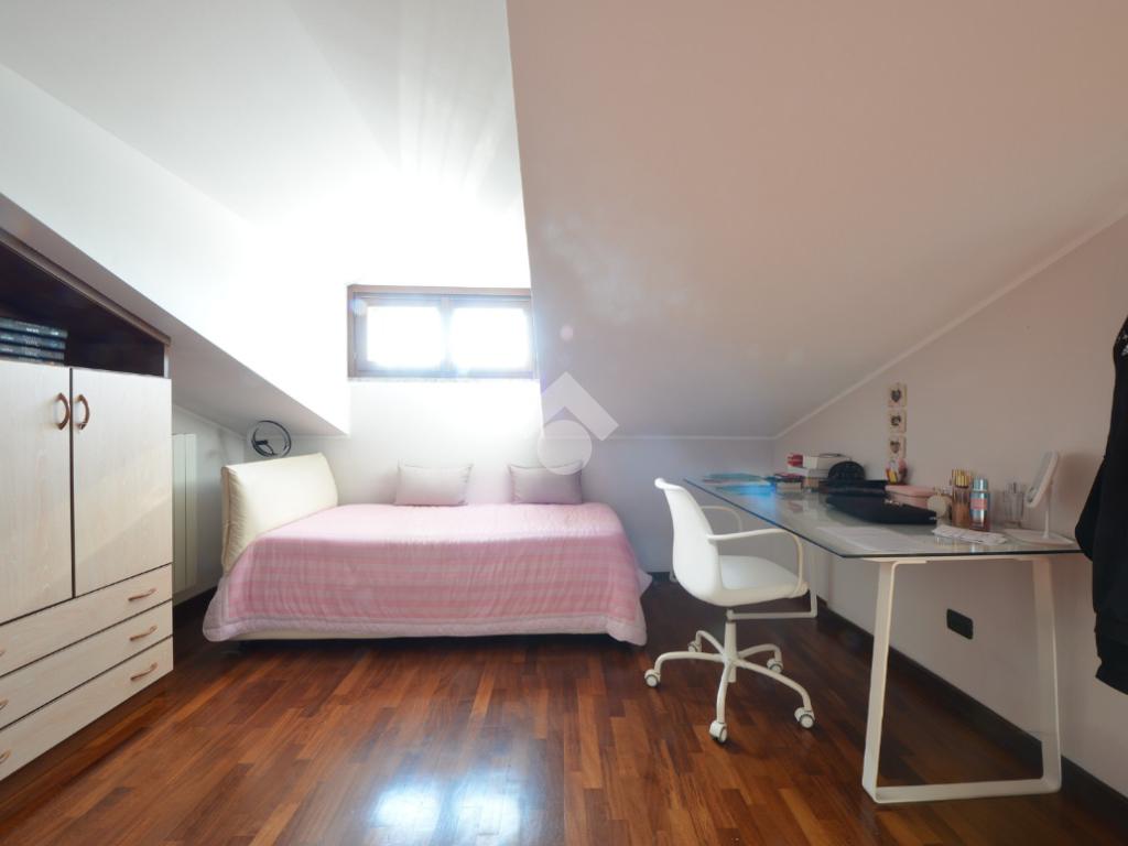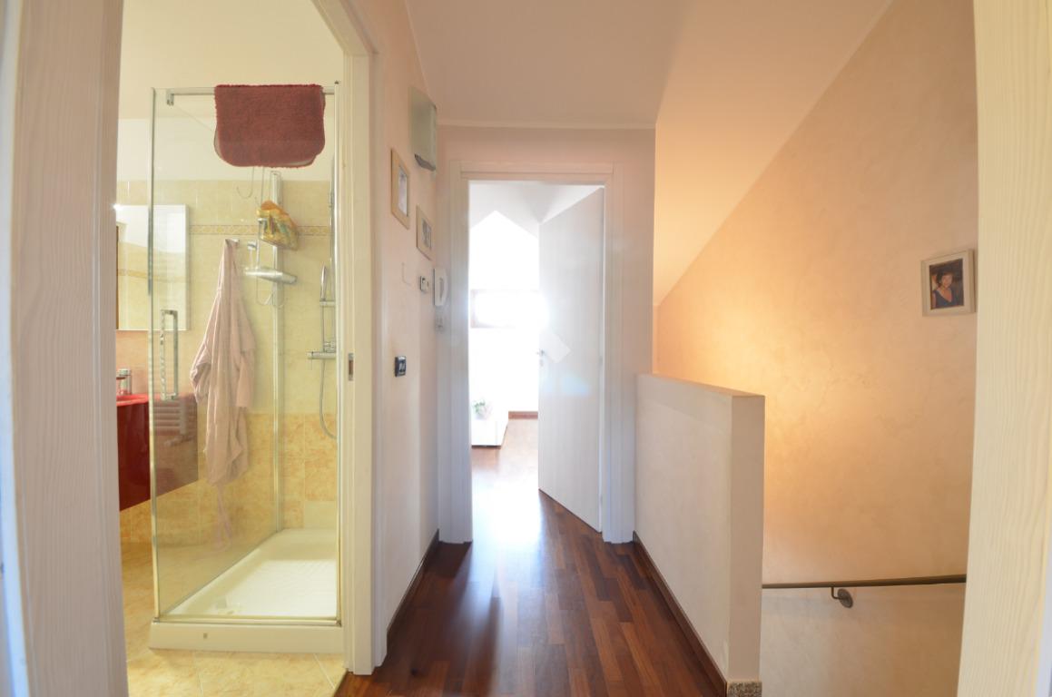 Una scala interna porta alla zona notte. Composta dalla seconda camera da letto, dal secondo bagno finestrato dotato di box doccia, con accesso al terrazzo grazie alla porta finestra e alla terza camera da letto con studio annesso.