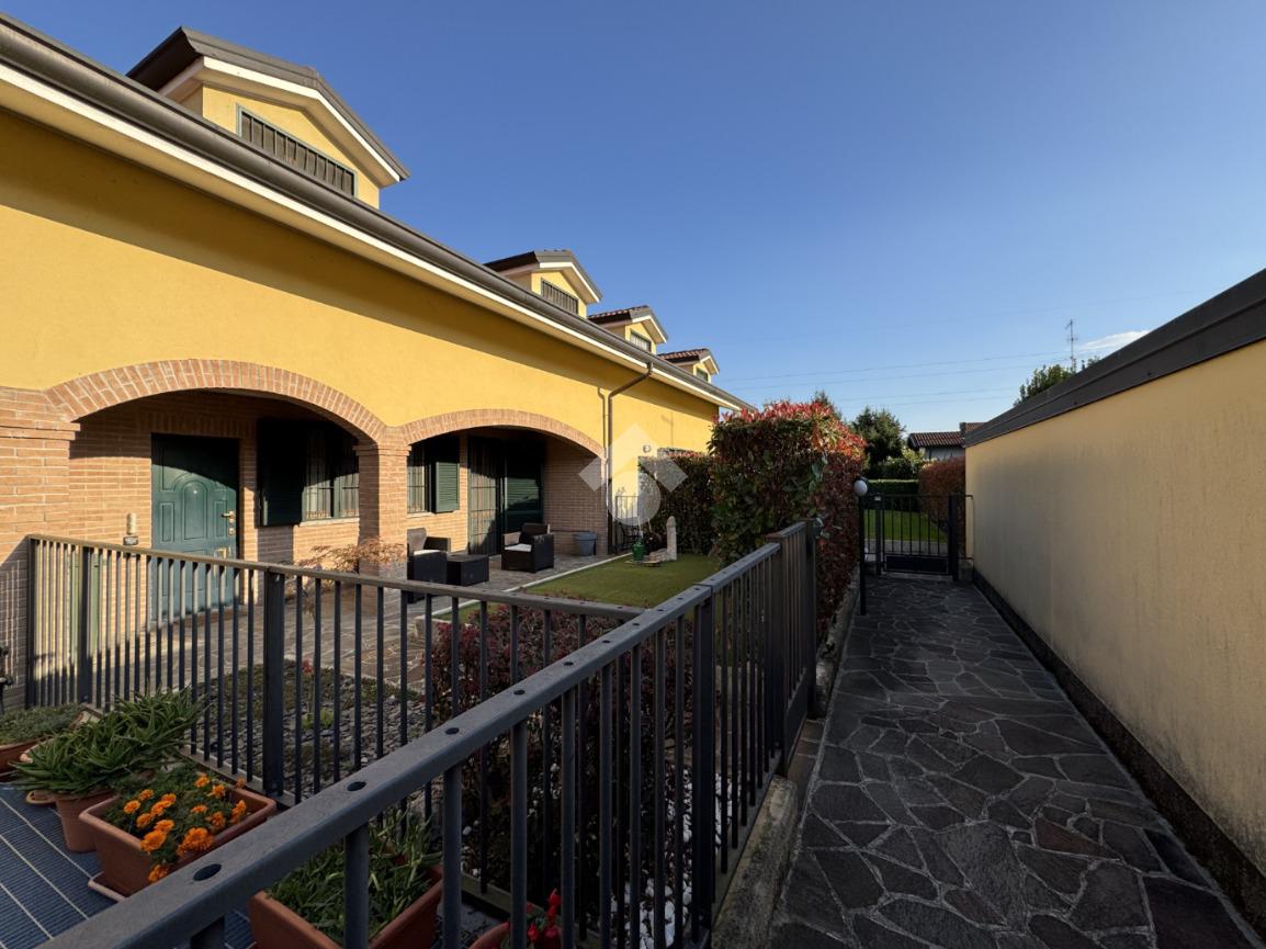Questa affascinante porzione di trifamiliare si trova in una zona tranquilla e residenziale di Cambiago, un comune che offre un'ottima qualità della vita grazie alla sua vicinanza ai principali servizi, alle scuole, e alle vie di comunicazione principali. La soluzione si presenta con tre livelli abitativi, ben distribuiti per garantire comfort, spazio e praticità.