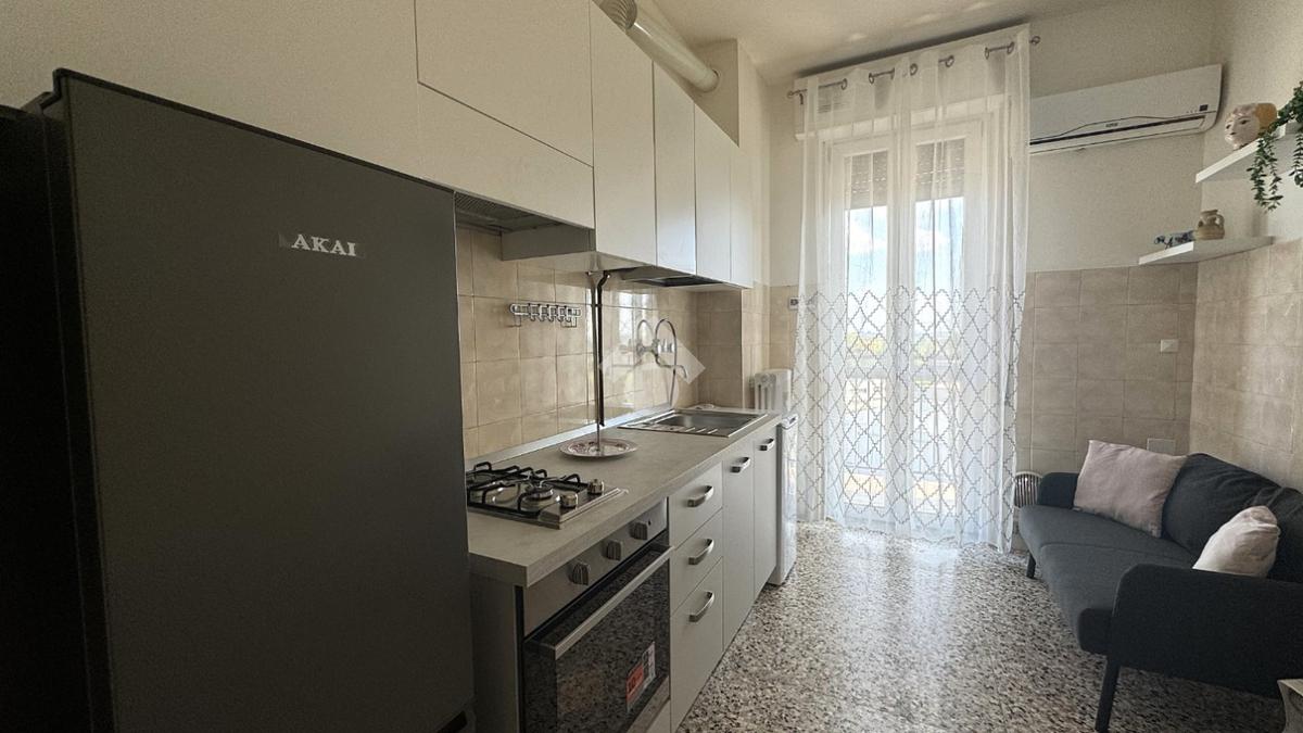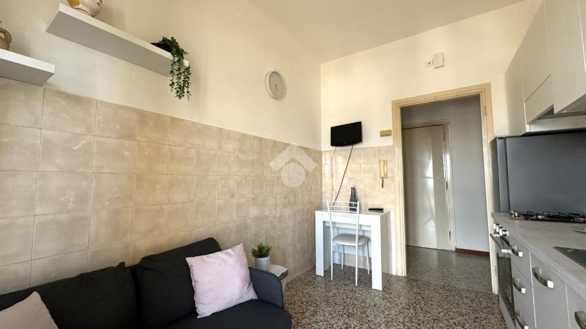 Dall' ingresso, si accede alla zona giorno, composta dal soggiorno con cucina a vista, con accesso diretto al balcone privato.