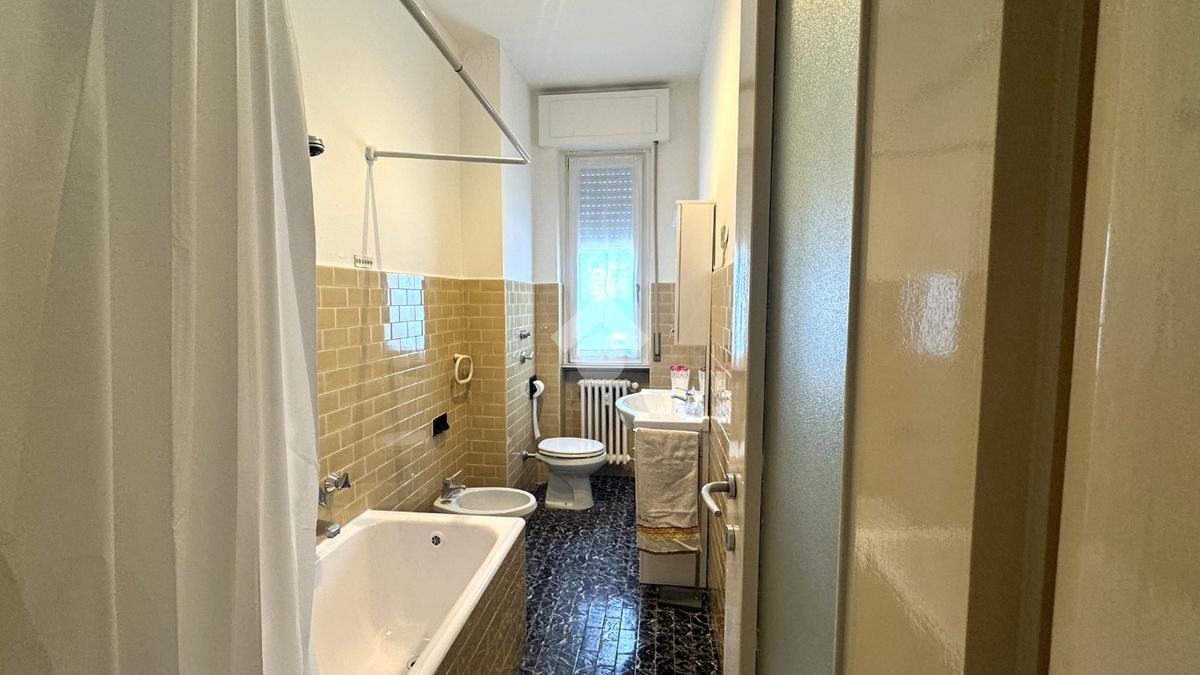 Un comodo disimpegno separa zona giorno dalla zona notte, dove troviamo il bagno finestrato dotato di vasca da bagno e dalla spaziosa camera matrimoniale, dalla quale si accede al balcone privato.