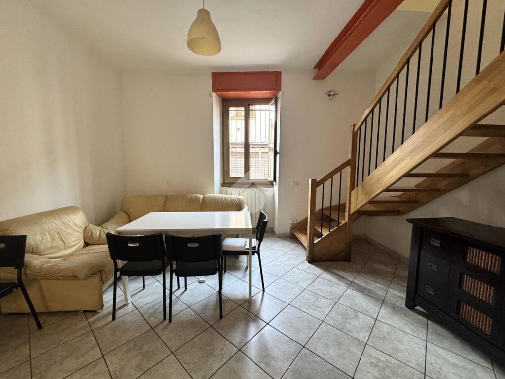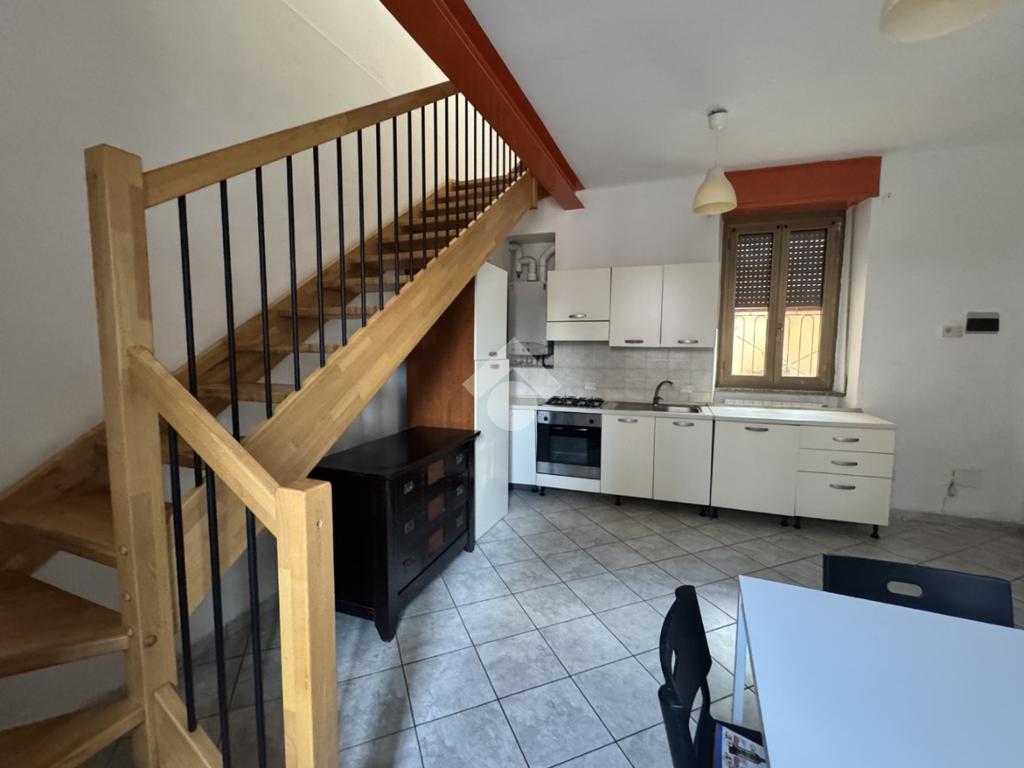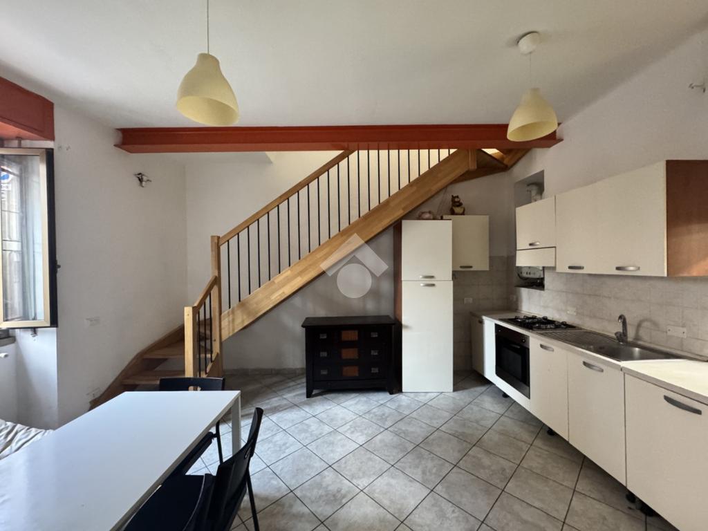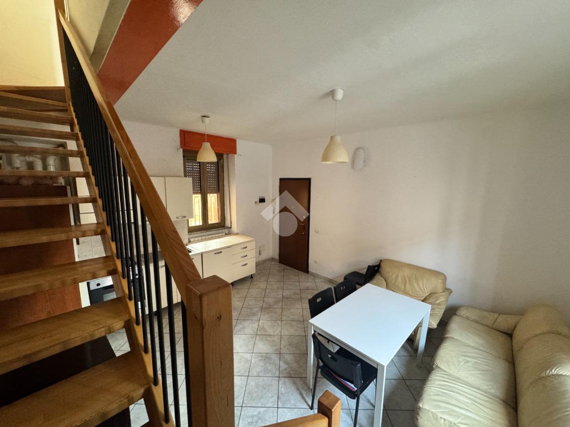 L'immobile è composto da un soggiorno con cucina a vista, creando un ambiente luminoso e accogliente.