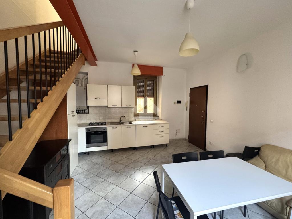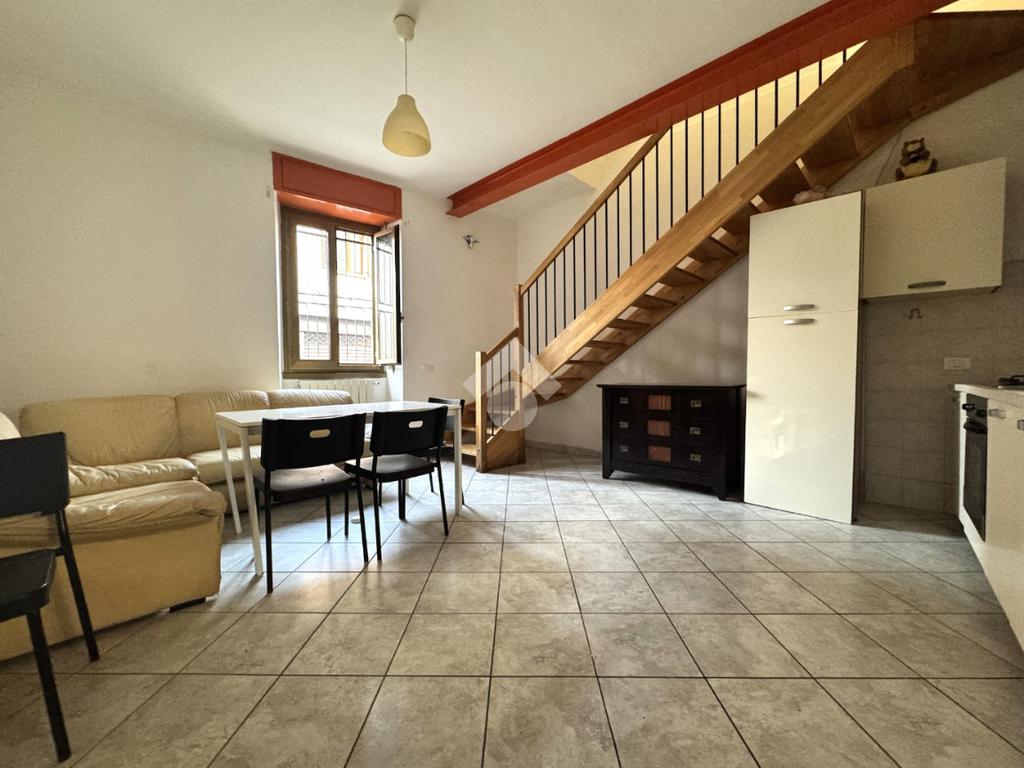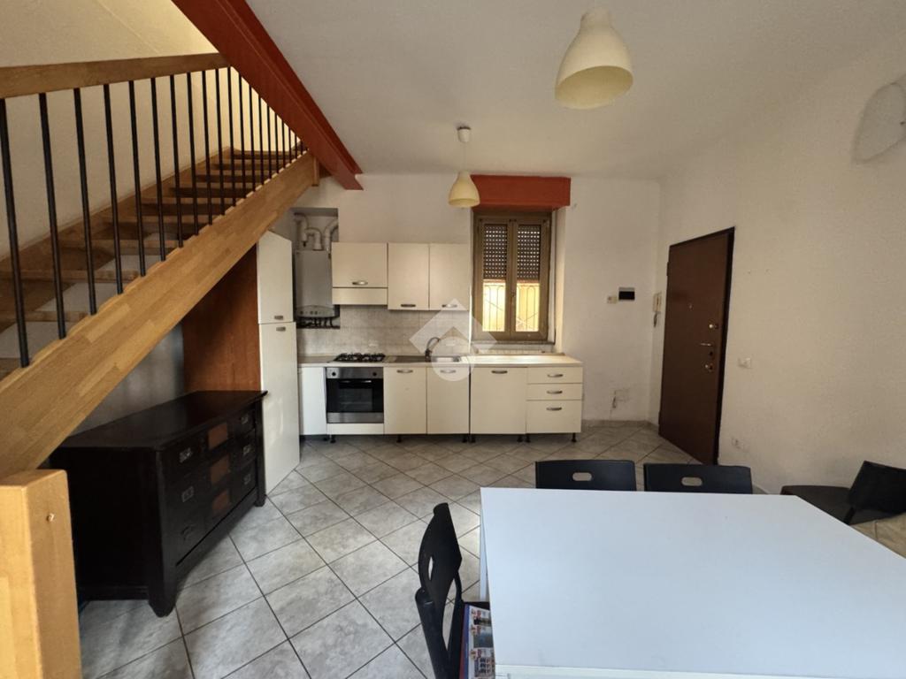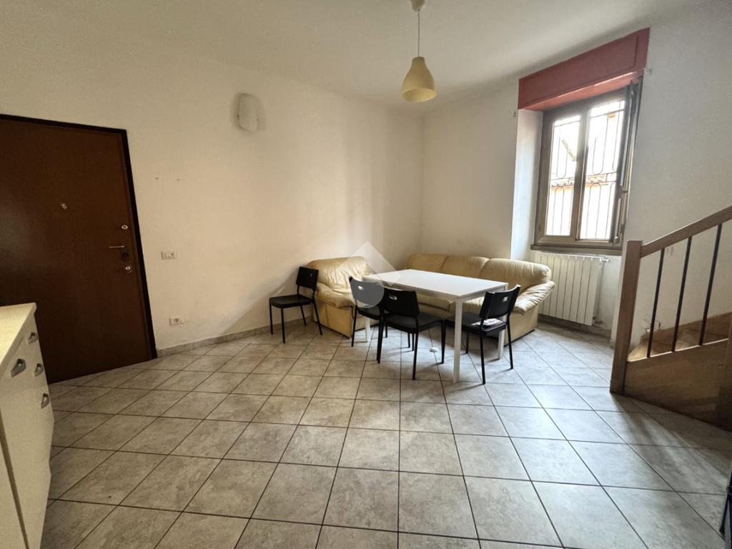 L'immobile è composto da un soggiorno con cucina a vista, creando un ambiente luminoso e accogliente.