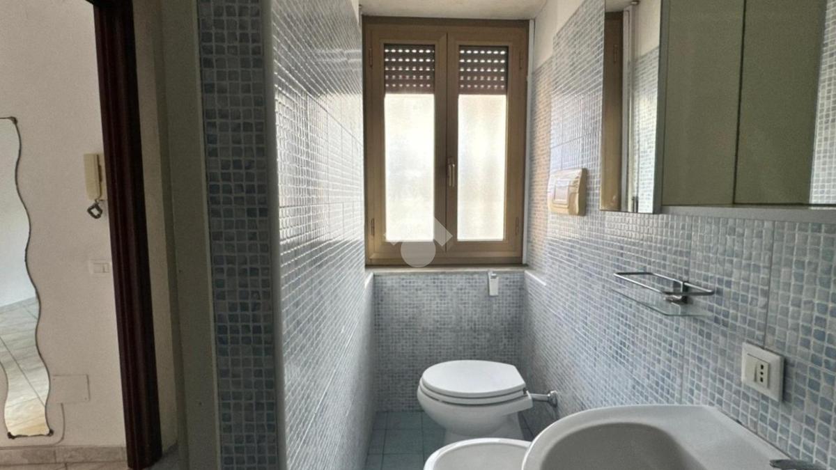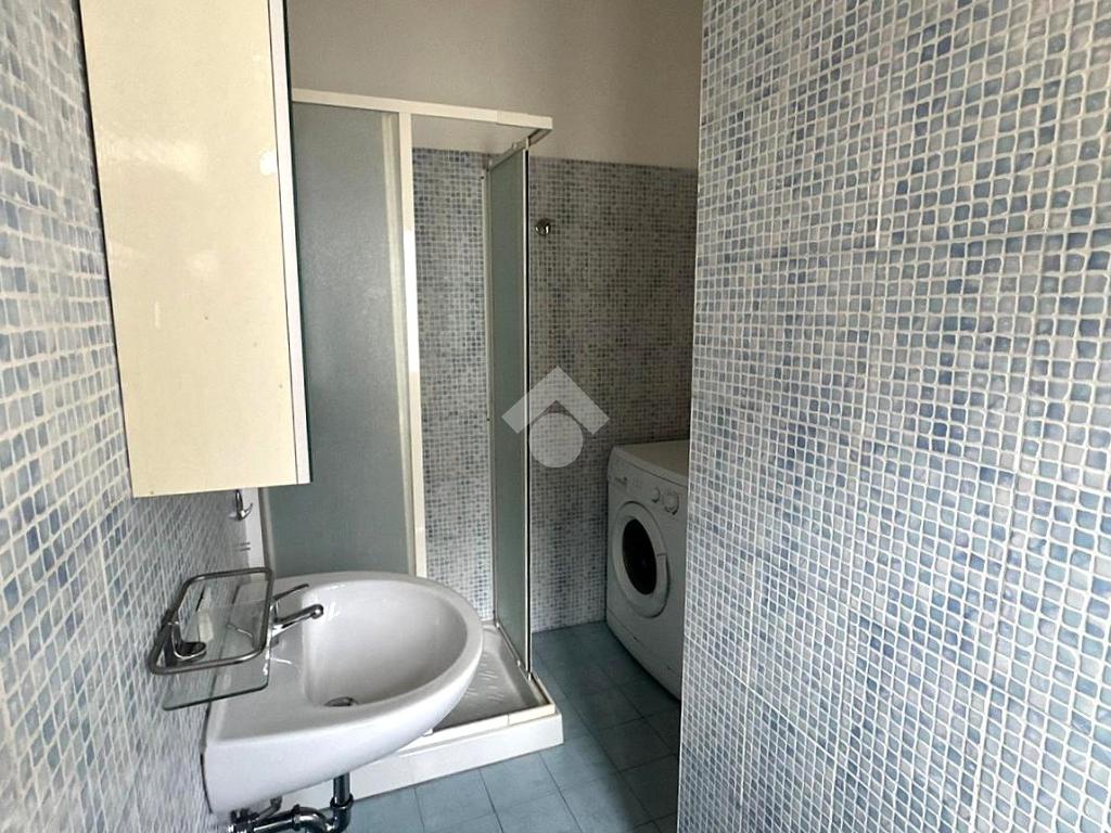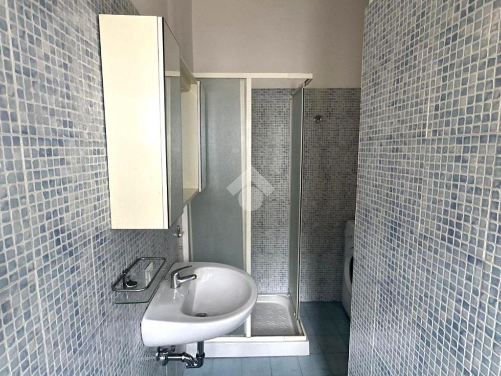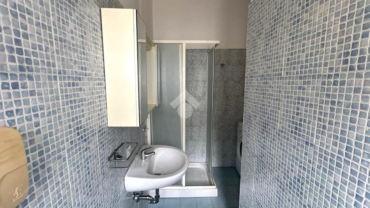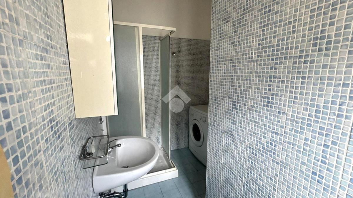 Un comodo disimpegno conduce al bagno finestrato, dotato di box doccia.
