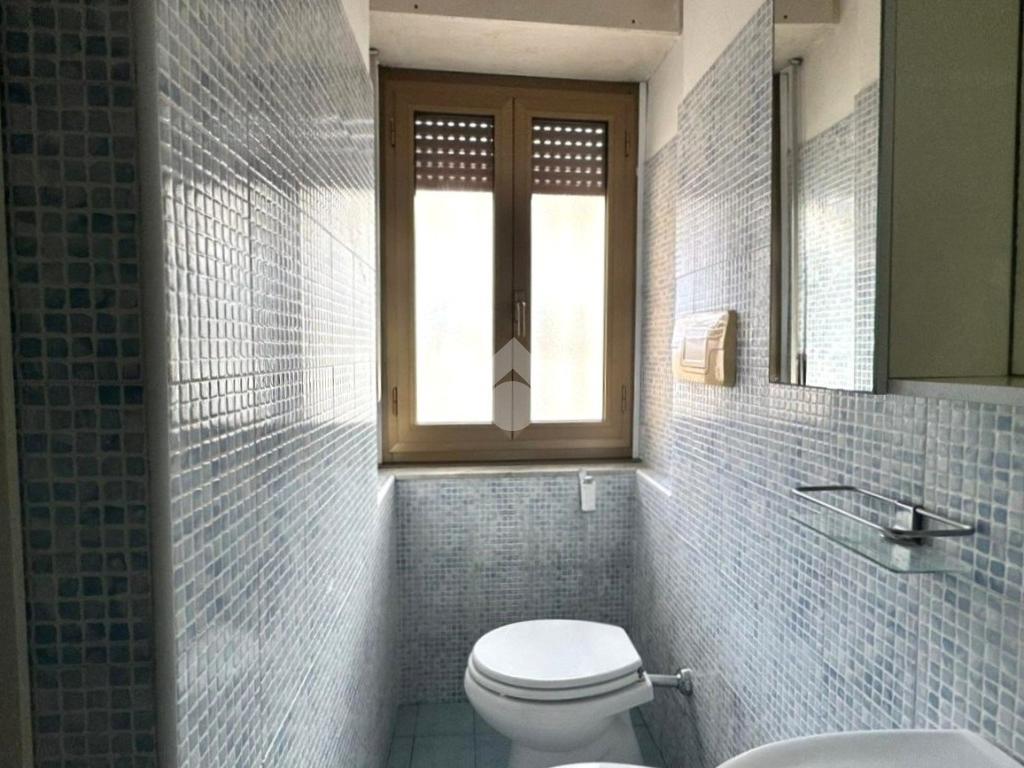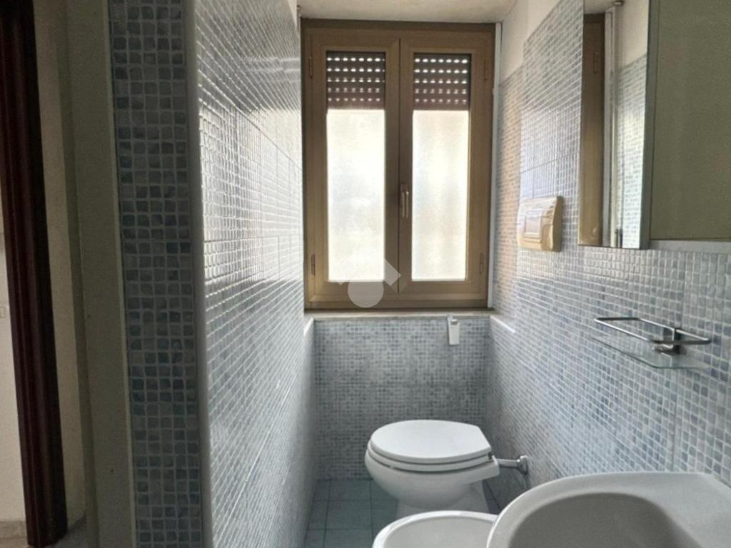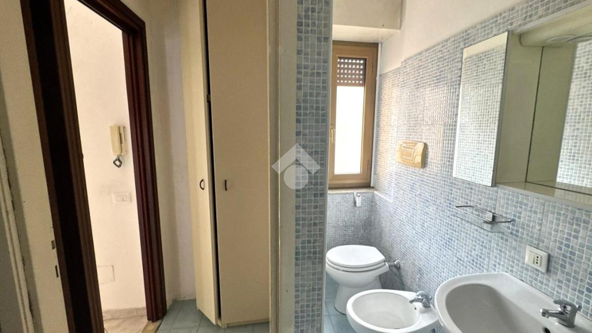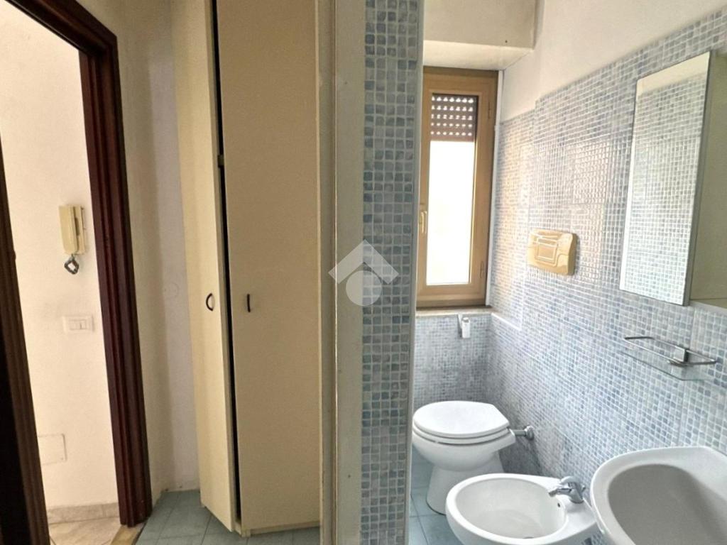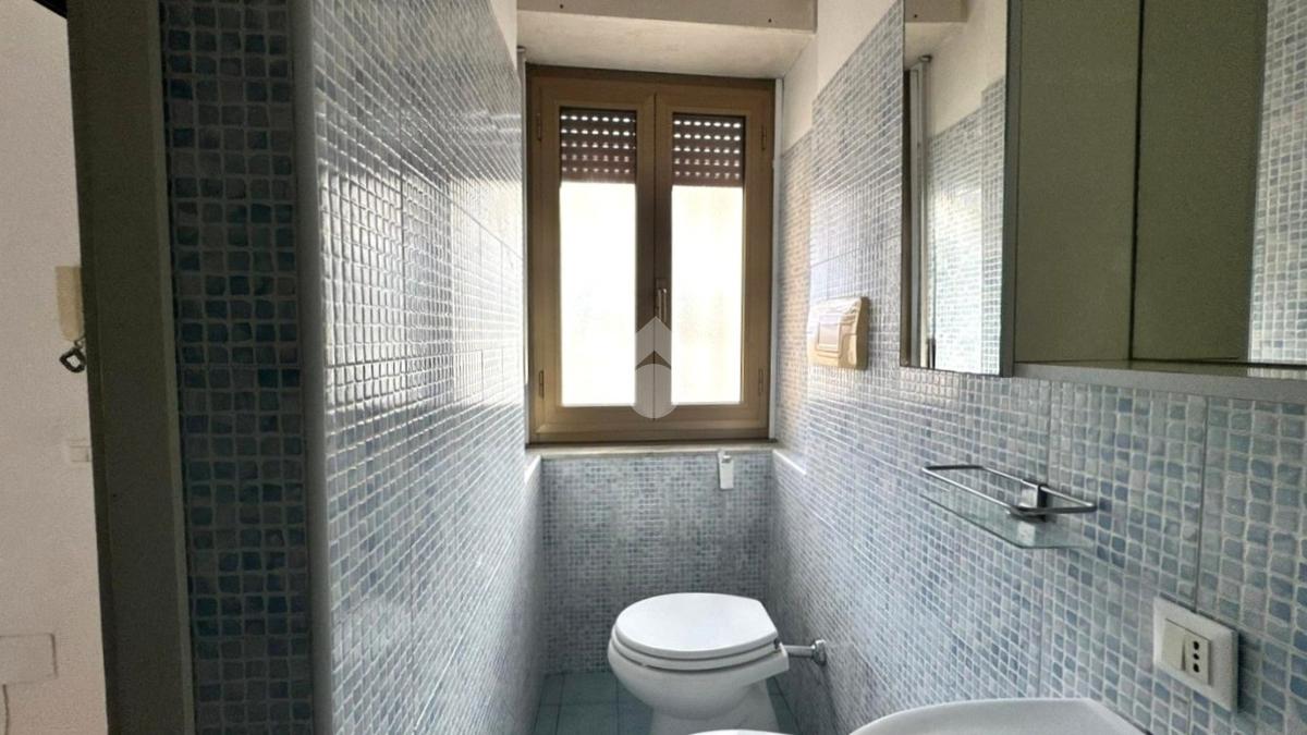Un comodo disimpegno conduce al bagno finestrato, dotato di box doccia.