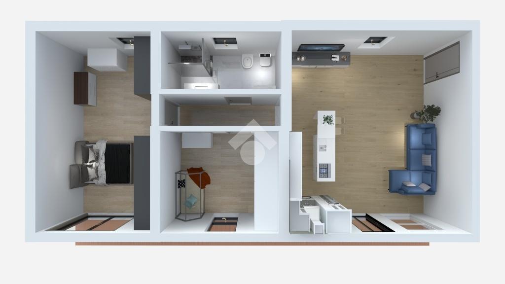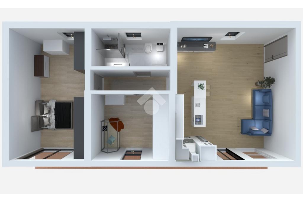 L'immobile si apre sulla zona giorno, composta dal soggiorno con cucina a vista, uno spazio ideale per i momenti di convivialità con amici e parenti. Grazie ad una porta finestra, si accede al balcone privato continuo.